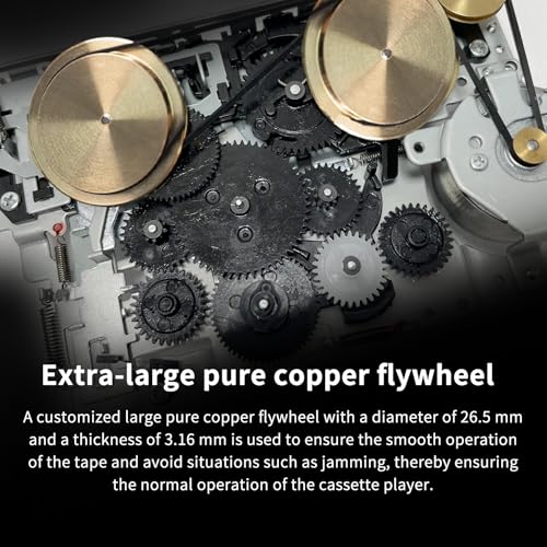 【Copper Wheel Movement&Earphone Jack】This tape player has cool copper wheel movement, high quality sound!The 3.5mm earphone jack also provides private personal listening space.