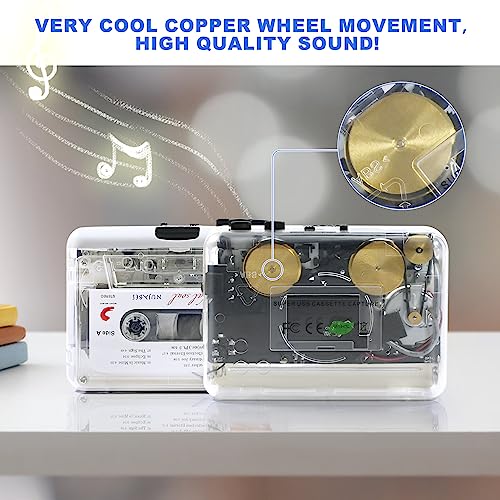 Auto Reverse &Clear Stereo Cassette Player,Built-in Cool Copper Wheel Movement&Earphone,Cassette Tape to MP3 Converter with Tape Converter Software,Powered by USB Power Cord or AA Battery