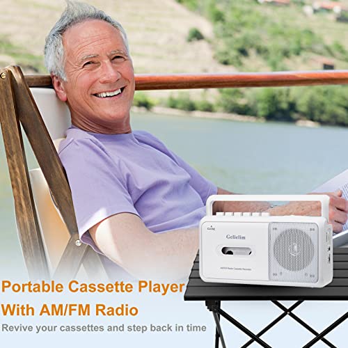 Gelielim Cassette Player Boombox, Portable AM/FM Radio Stereo, Cassette Tape Player Recorder with Big Speaker and Earphone Jack, Battery Operated or AC Powered Tape Recorder Cassette Player