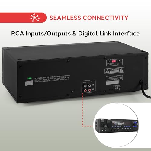 Pyle Home Digital Dual Cassette Deck Media Player Music Recording Device with RCA Cables Switchable Rack Mounting Hardware CrO2 Tape Selector Included 3 Digit Counter – 110V/220V