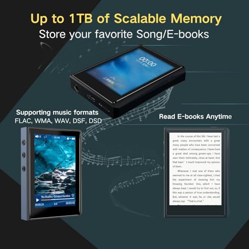 🎶 High-res sound quality – Elevate your music experience with the Surfans F22 portable music player. Powered by the advanced RK3308G 64-bit Quad-core ARM Cortex-A35 processor, it delivers pristine HD audio with minimal distortion, perfect for audiophiles. Supports a wide range of high-quality formats including FLAC, WMA, WAV, DSF, and DSD, with native DSD 128/256 and PCM up to 384kHz/32bit.