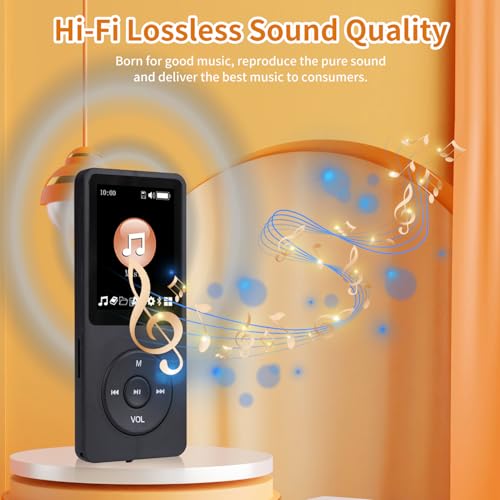 HiFi Lossless HD Sound and The MP3 player has built-in HiFi lossless HD speakers, supports wireless headphones to play music, and HD sound allows you to enjoy the music feast. Built-in allows you to listen to your favourite radio stations, plug in wired headphones as an antenna to search for more stations, so you can enjoy MP3 anytime & anywhere.