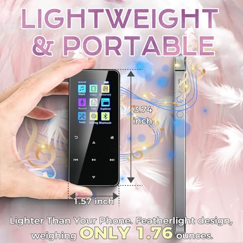 80GB MP3 Player with Bluetooth Portable HiFi Music Player with HD Speaker, Lossless Sound, FM Radio, Voice Recorder, Touch Buttons, E-Book (Earphones & 16GB + 64GB Card Included, No WiFi)