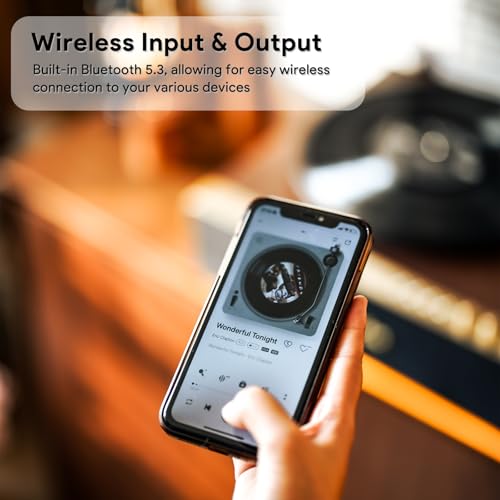 【Wireless Connectivity】Experience modern convenience with Bluetooth 5.3 technology, allowing you to effortlessly stream music from your smartphone, tablet, or other Bluetooth-enabled devices. This retro turntable also supports Bluetooth output, letting you enjoy vinyl sound through wireless speakers or Bluetooth headphones. Perfect for those who love the classic vinyl experience with a touch of modern versatility.