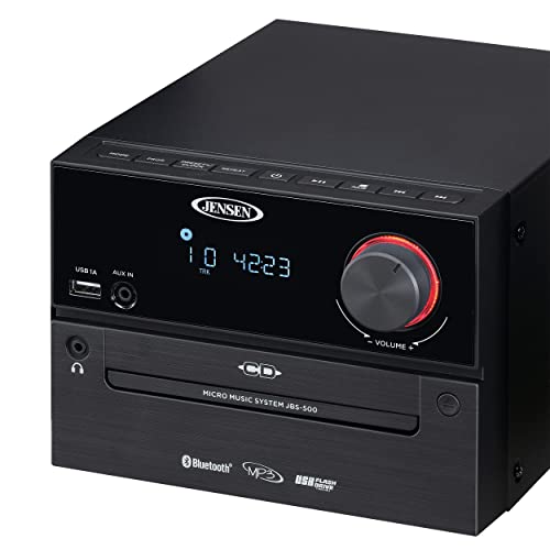Jensen Home Speaker JBS-500 Premium Bluetooth Wireless 30W Stereo Music System CD Player, MP3 USB, Audio in, Headphone Jack, FM Radio, (Matte Black)
